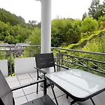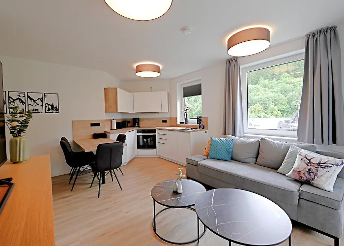 这家68平方米的公寓设有小厨房。 步行5分钟即可到达Besucherzentrum汽车站。 公寓的阳台配有小厨房。